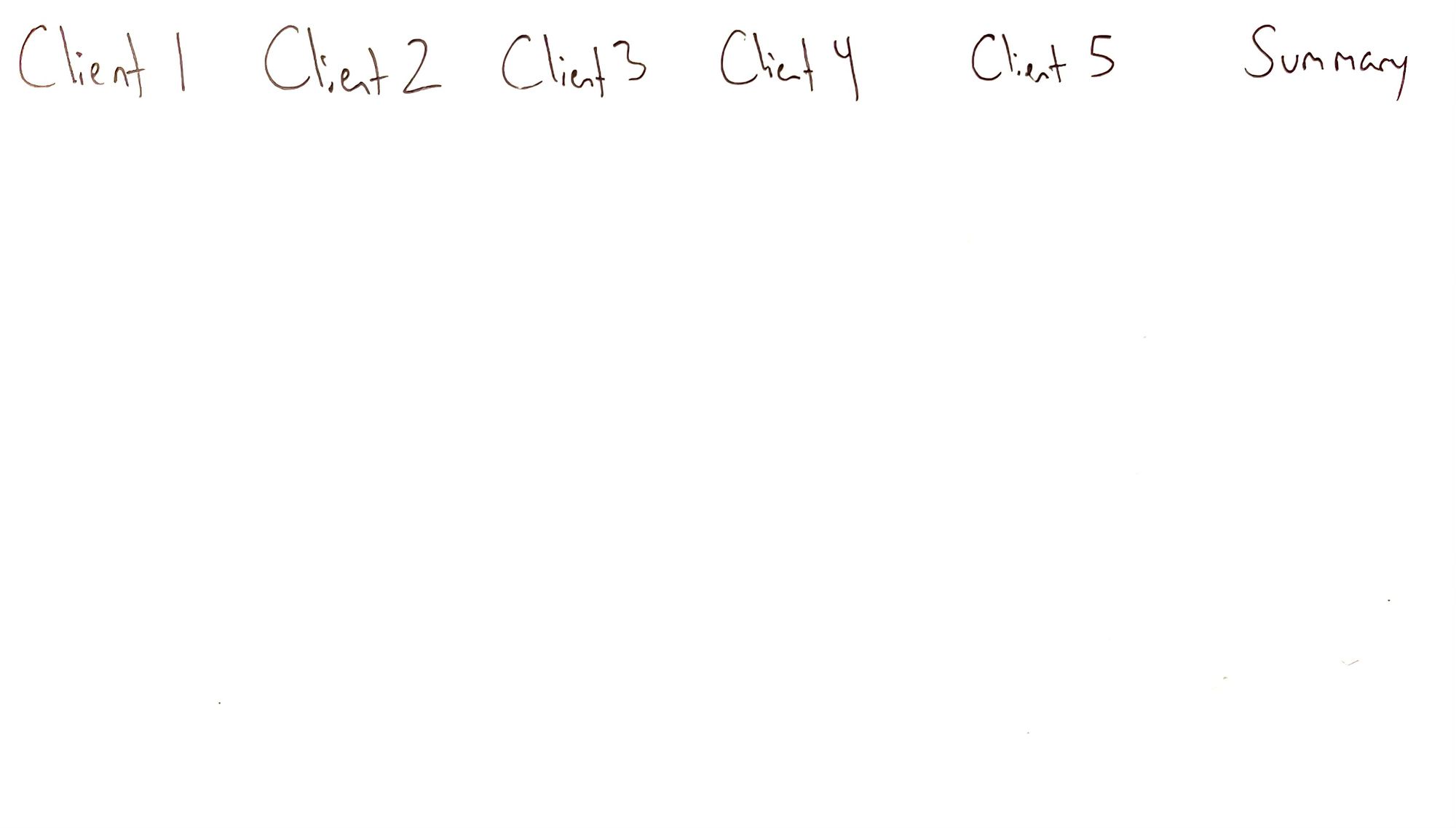 To give you an example, I’m going to write “Katie” (name changed) under Client 1, and I’ll use her as an example as we go through. Make sure you fill out all five of yours, though.