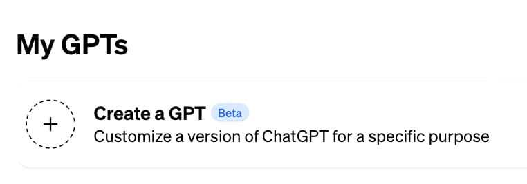 Now that we know what our custom GPT is for, we can go to https://chat.openai.com/gpts/mine and select Create a GPT.