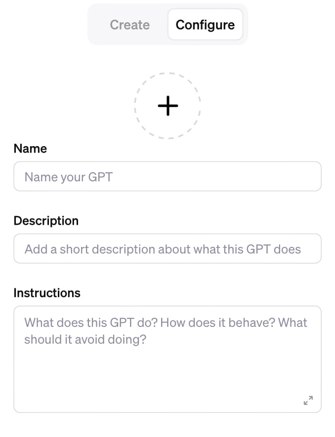Yes, custom GPTs allow you to interact with ChatGPT to help you build out your instruction prompt in a conversational style. In my experience, though, this approach leads to short and unreliable prompts. So, instead, we’re going to write our own.