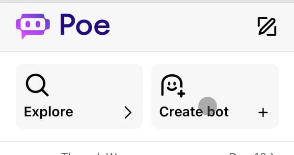 Go to Poe.com and sign up for an account. Then, in the side panel, select “Create bot”.