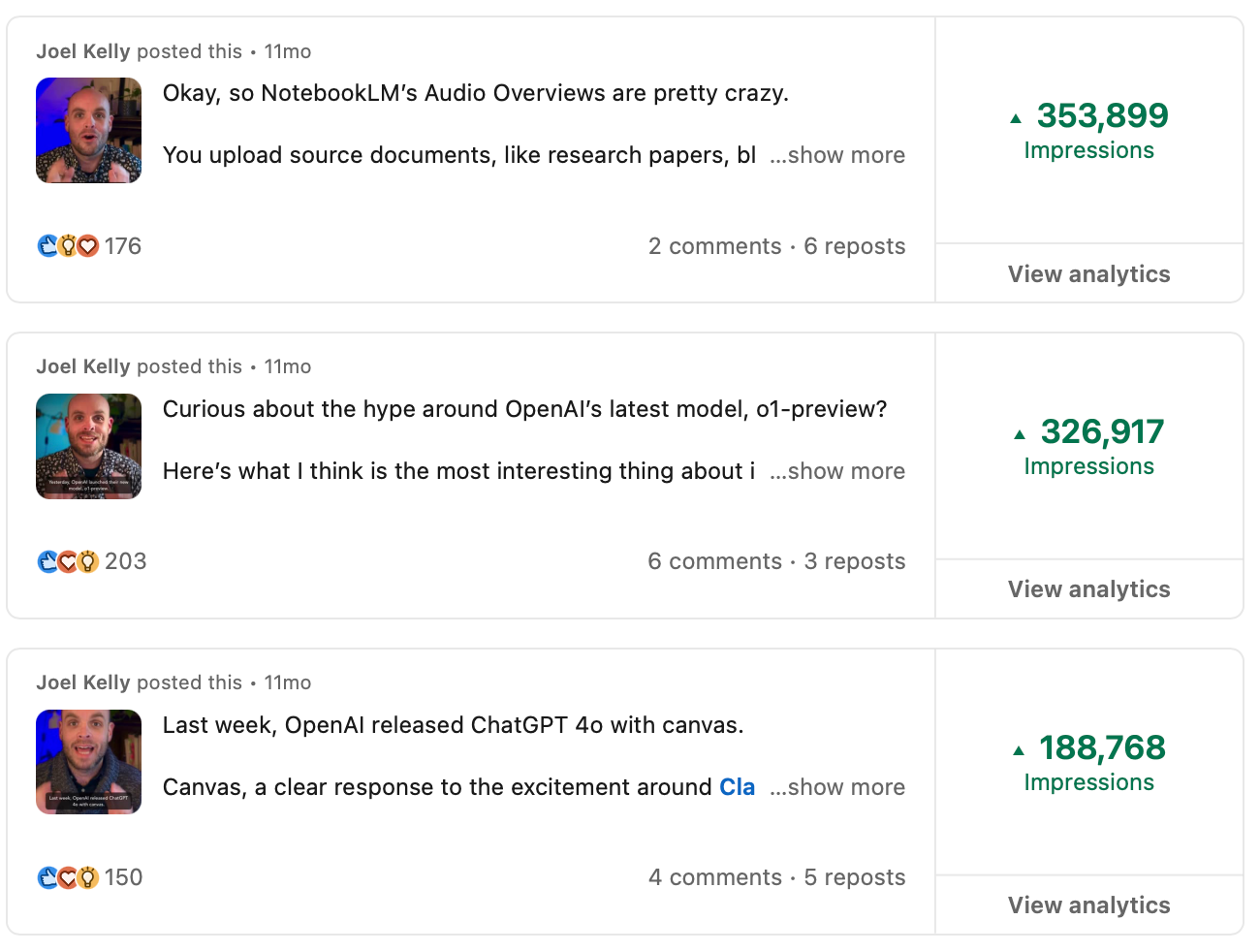 Last year I went through a period where I was regularly getting hundreds of thousands of impressions on my posts because I was making semi-viral shortform videos (mostly about AI topics).